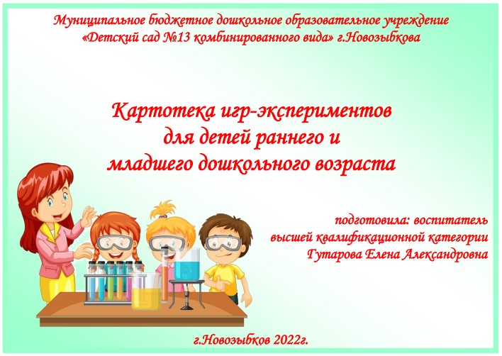 Картотека игр-экспериментов для детей раннего и младшего дошкольного возраста